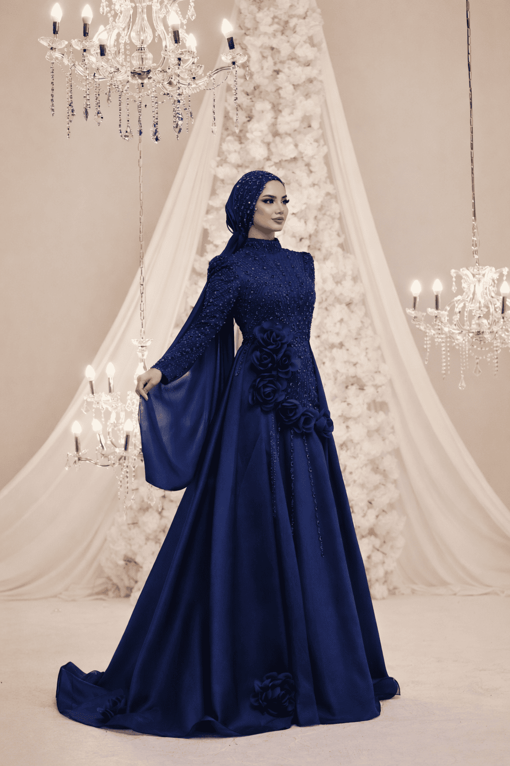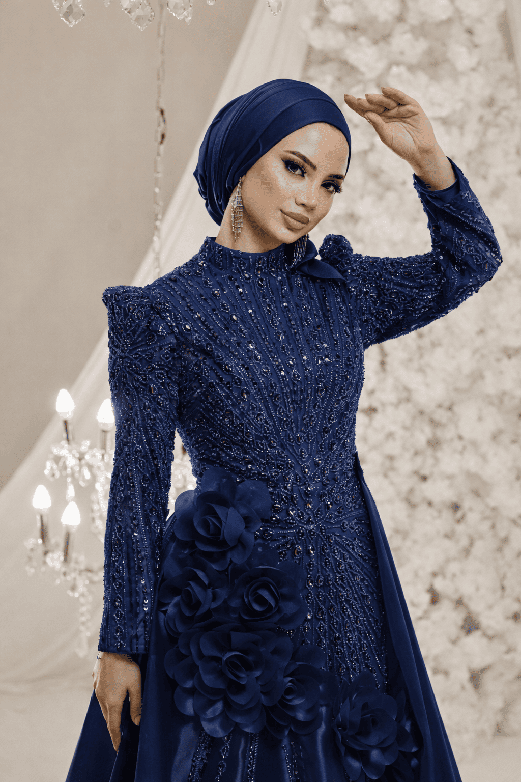İthal dantel detaylarının şıklığı ile anjelika kumaşın rahat ve dökümlü yapısını bir araya getiren sofistike bir model.
